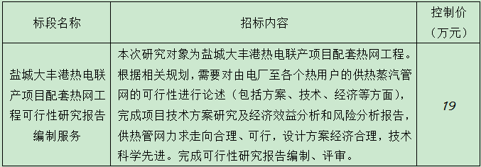 2. 項目名稱:鹽城大豐港熱電聯(lián)產(chǎn)項目配套熱網(wǎng)工程可行性研究報告編制服務(wù)。