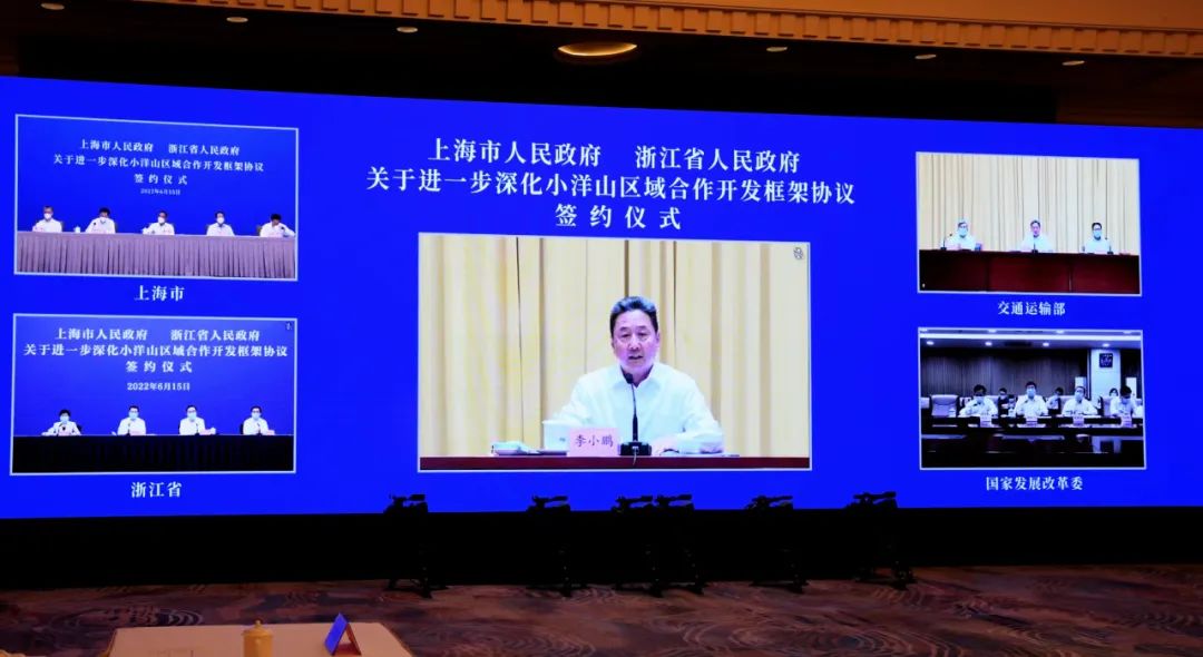 6月15日下午,上海市政府與浙江省政府以視頻連線方式正式簽署進(jìn)一步深化小洋山區(qū)域合作開發(fā)框架協(xié)議。上海市委書記李強(qiáng)、浙江省委書記袁家軍和交通運(yùn)輸部部長(zhǎng)李小鵬、國(guó)家發(fā)展改革委副主任胡祖才出席簽約活動(dòng)并講話。上海市委副書記、市長(zhǎng)龔正,浙江省委副書記、省長(zhǎng)王浩共同簽署協(xié)議。