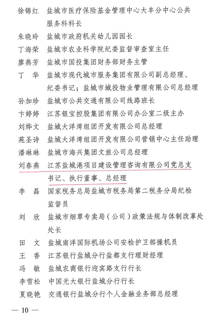 ????近日,市城鎮婦女“巾幗建功”活動領導小組、市農村婦女“雙學雙比”競賽活動領導小組、市婦女聯合會聯合發布《關于命名2021-2022年度全市城鄉婦女崗位建功先進集體(個人)的決定》,鹽城港智慧港口公司海燕班組榮獲“2021-2022年度鹽城市巾幗文明崗”榮譽稱號,鹽城港項目建設管理咨詢公司黨總支書記、執行董事、總經理劉春燕榮獲“2021-2022年度鹽城市巾幗建功標兵”榮譽稱號。