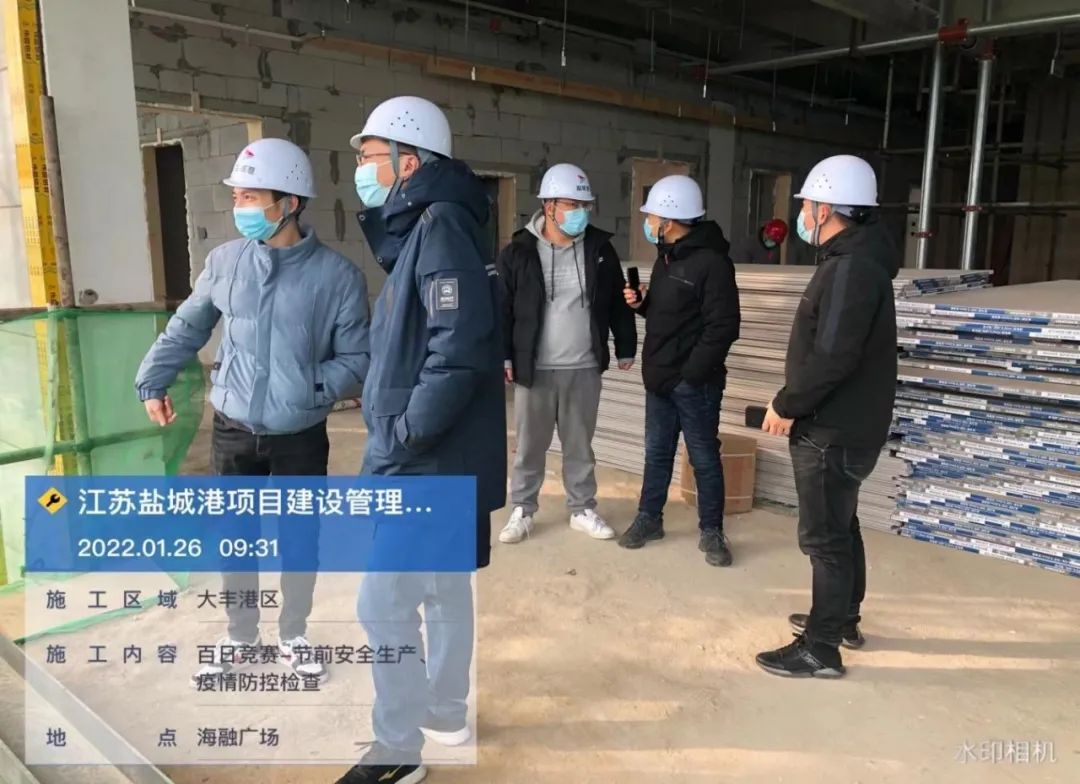 1月26日上午,項目公司分管安全領導及相關職能部門在大豐港區集裝箱堆場項目以及集中隔離點項目通過實地檢查、聽取匯報等方式開展風險隱患排查工作,重點檢查了臨時用電、腳手架搭設、冬季防火防凍、材料堆放、疫情防控等易存在安全隱患部位的安全管理與安全防護措施的落實情況。從檢查結果看,總體上各項目部對安全生產工作高度重視,安全生產責任制度落實、任務明確、措施得力。