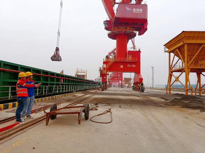 射陽港區設備班組秉承“學以致用,學用結合”的思想理念,多頻次參加崗位操作標準化互檢活動,不斷強化實操經驗。設備班組加強對大型設備防風裝置的檢查和保養,提高設備使用性能,使“合規管理”“提質增效”在港區遍地開花。