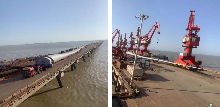 面對本次風電葉片作業運輸、轉場、吊裝等流程的高難度和嚴要求,鹽城港智慧港口公司堅持以客戶需求為中心,從貨源對接、場地調整、靠泊安排等方面精心籌劃,提前制定作業方案,積極組織碼頭、堆場、物流公司等相關單位協同配合,確保作業任務高效且圓滿完成。此次吊裝的成功,不僅得到客戶高度認可和一致好評,同時也再一次擦亮鹽城港“全國風電葉片出口三大基本港之一”的金字招牌。