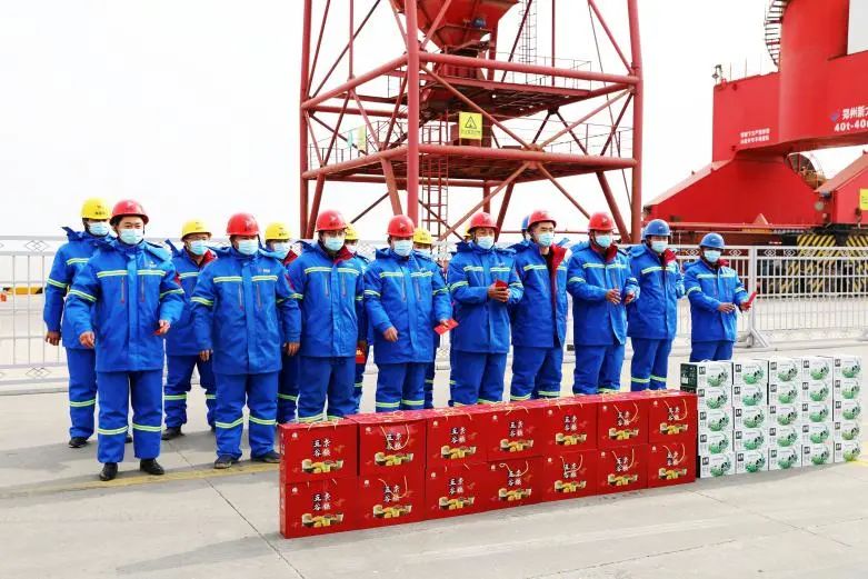 在大豐港區(qū)集裝箱碼頭,周正雄和堅守崗位的工作人員一一握手,感謝大家的默默奉獻(xiàn),為保障港口安全平穩(wěn)運(yùn)行而付出的努力,并向他們送上慰問品。他說,去年以來,集團(tuán)統(tǒng)籌做好安全生產(chǎn)和疫情防控各項工作,并取得了良好的業(yè)績,這離不開全體員工的共同努力和無私奉獻(xiàn),離不開員工家屬對集團(tuán)的信任和關(guān)心,更離不開家屬們對員工的支持和理解。希望全體員工按照集團(tuán)黨委的要求,切實利用好“早晨會、晚匯報”這一工作模式,對晨會的形式和內(nèi)容進(jìn)行再融合再提升,更加全身心地投入工作,全力打造出一支港口鐵軍隊伍,為鹽城港人樹立榜樣,全面激活港口活力,增強(qiáng)發(fā)展后勁,為完成全年和各項工作目標(biāo)而繼續(xù)努力、繼續(xù)奮斗。